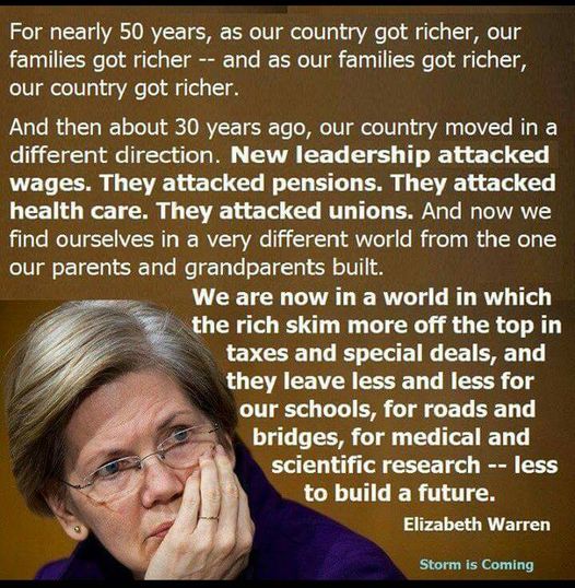 As we prepare to begin a new year, how do you feel about your prospects and the state of our country? As Senator Elizabeth Warren articulates where we have come from and where we are now, do you share her assessment? Do you foresee our coming together and turning this country around or have you lost all hope we can do that?
